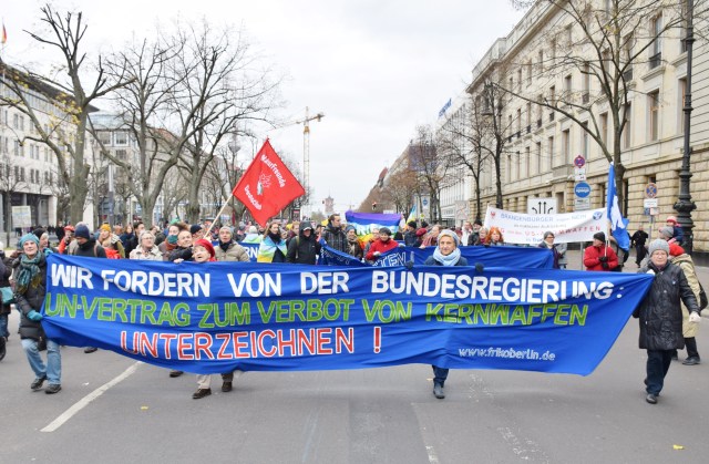 Hinzu kommt, dass die Nuklearstrategie der NATO den Ersteinsatz von Atomwaffen nicht ausschließt. Zusätzlich erhöhen die Kündigung erreichter Abrüstungsvereinbarungen und die Produktion neuer „Mini-Nukes“ die Atomkriegsgefahr.